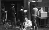 パネルに人形をつけました(今度のは蝶番で折りたたみ式です)。それと地区大で擦れて汚れてしまった黒板を手直ししようとして、手違いで黒板を塗り直す羽目に。舞監のS井が編み出した「乾け乾け踊り」を女衆で踊っていました。